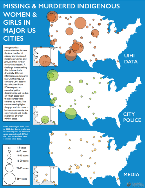 Urban Indian Health Institute. “Missing and Murdered Indigenous Women and Girls.” Urban Indian Health Institute, 14 Nov. 2018, http://www.uihi.org/wp-content/uploads/2018/11/Missing-and-Murdered-Indigenous-Women-and-Girls-Report.pdf.